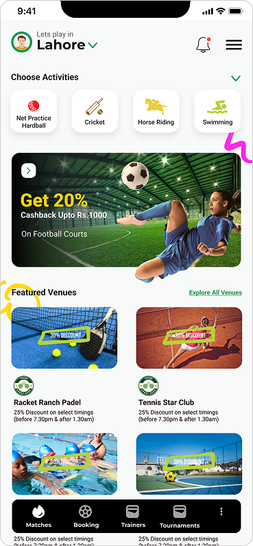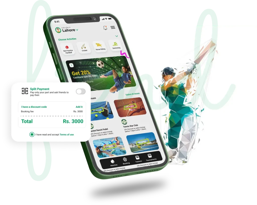 Invite those you want to play with and split the payment. Avoid chasing friends for payments and instead focus all your attention on the game. With split payment, you can invite your friends directly in the booking.